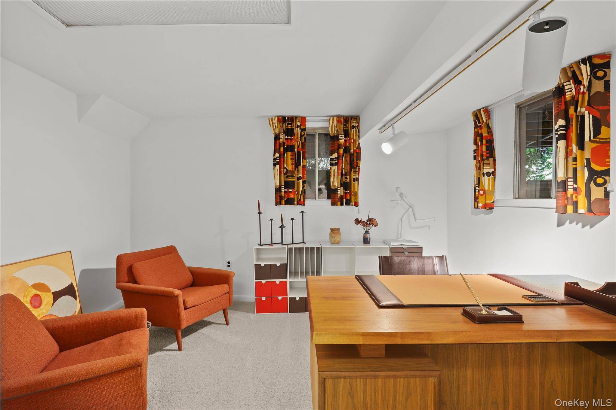 First time on market! This meticulously maintained 4-bedroom Mid-Century Modern Ranch sits at the end of a quiet cul-de-sac in a highly sought-after neighborhood within the award-winning Byram Hills School District. Exceptional design, abundant natural light and seamless indoor-outdoor flow define this special home. The functional open layout is ideal for both everyday living and effortless entertaining, with expansive windows and numerous skylights elegantly merging the home's interior with nature's beauty. A unique covered front entry and two-tier deck enhance the home's architectural appeal and reinforce the home's connection to nature. A flat and private backyard framed by mature trees is ideal for play, relaxation, and gatherings. An updated kitchen and primary bath; custom lighting, built-ins and shelving; plus an impressive courtyard-style driveway further add to this home's modern appeal. The fully finished walk-out lower level offers versatile living space plus significant storage. New roof and gutters (2023). Low taxes. Conveniently located near Byram Hills schools, downtown Armonk's gourmet dining and boutique shops, North White Plains Metro-North station and less than 45 minutes to Manhattan via car—don't miss this one-of-a-kind gem!