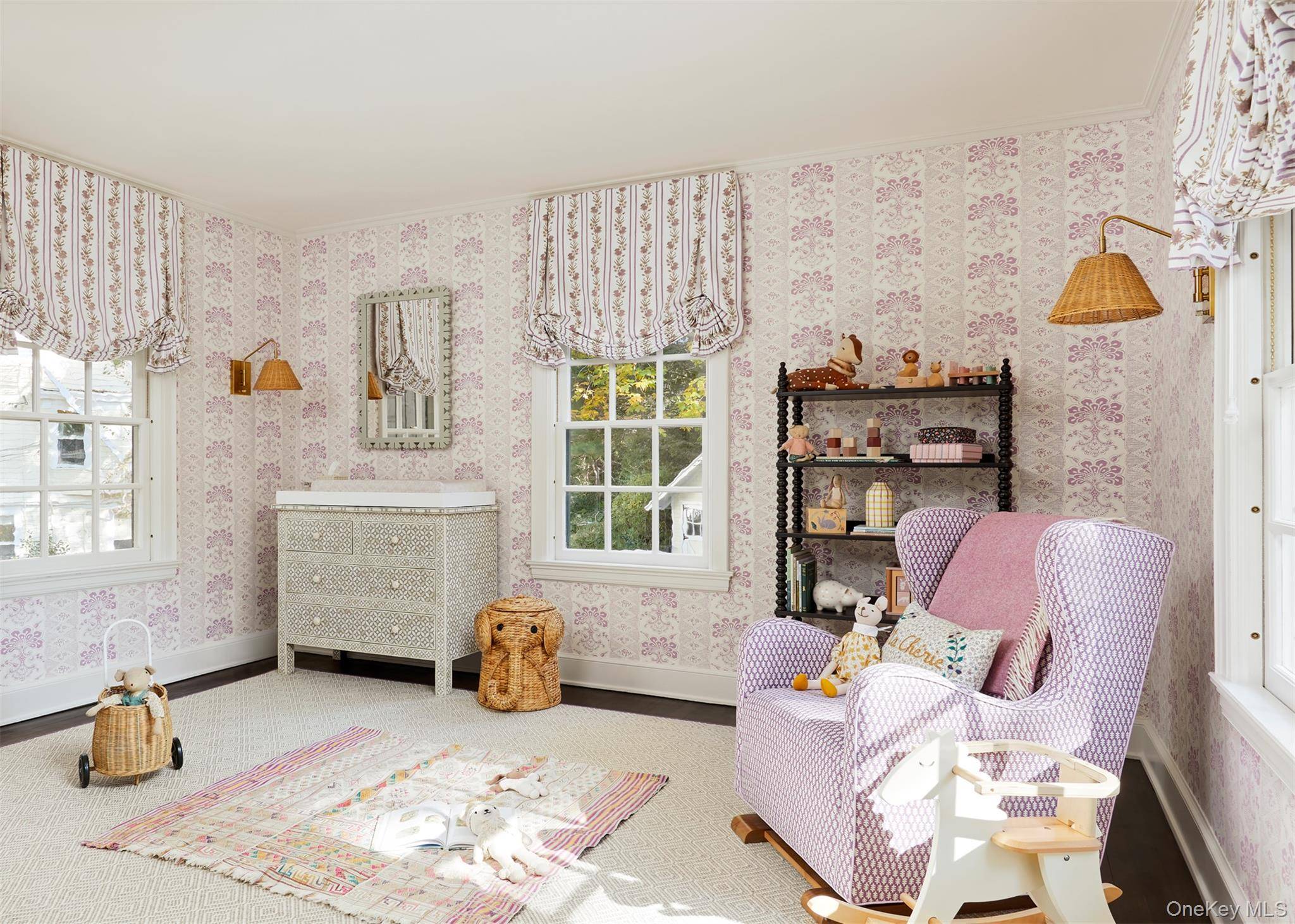 The primary suite is a true retreat with a stunning bath finished in Carrara marble, with double sinks, a custom vanity, radiant heated floors, and a linen closet. Three additional light-filled bedrooms share a renovated bathroom.